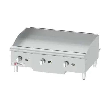 Elevate the experience with essentials. Introducing the Grindmaster-cecilware GCP36 Gas Countertop Griddle, designed to revolutionize your commercial restaurant kitchen. With a spacious 36"W x 20"D cooking surface and a 1" thick steel griddle plate, this griddle offers ample space for cooking a variety of dishes simultaneously. Equipped with three 30,000 BTU/hr stainless steel burners, each with independent cooking zones, you have precise control over heat distribution and cooking temperatures. The stainless steel construction ensures durability and easy cleaning, while the manual controls allow for effortless operation. With a powerful 90,000 BTU/hr output, this griddle delivers exceptional performance, making it perfect for high-volume cooking. Certified by cETLus and ETL-Sanitation, you can trust in its safety and reliability. Upgrade your restaurant kitchen with the Grindmaster-cecilware GCP36 Gas Countertop Griddle and experience enhanced efficiency and culinary excellence.